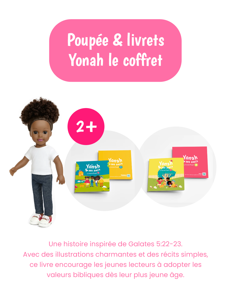 Offrez à votre enfant une expérience complète avec le coffret Yonah 1 et 2, accompagné de sa poupée Yonah. Ce coffret unique permet aux enfants de vivre les aventures de Yonah à travers les livres tout en ayant leur héroïne préférée à portée de main. Idéal pour apprendre, jouer et grandir dans la foi, ce coffret apporte joie, imagination et valeurs chrétiennes.